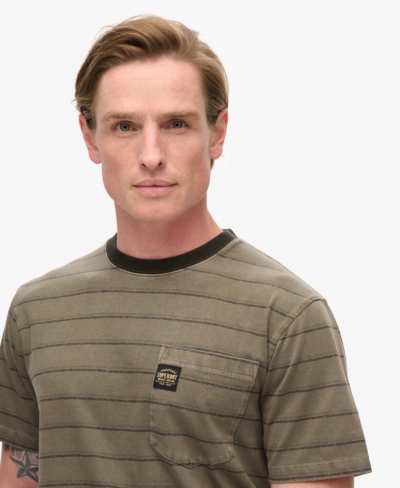 Textured Stripe Pocket T Shirt | Washed Morel Brown Stripe
