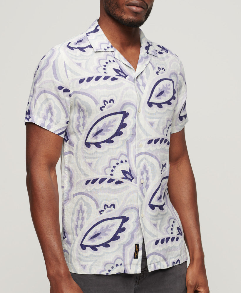Open Collar Printed Linen Shirt | Laurel Grey Print