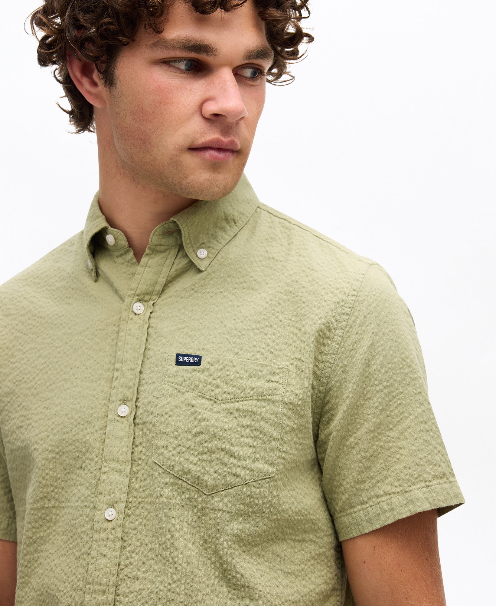 Seersucker Short Sleeve Shirt | Burnt Sage