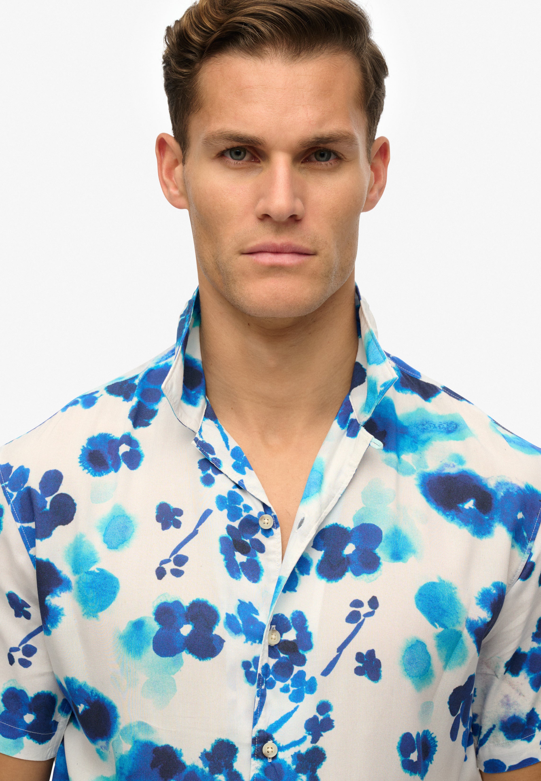 Short Sleeve Print Shirt | Abstract Floral Wedgewood Blue