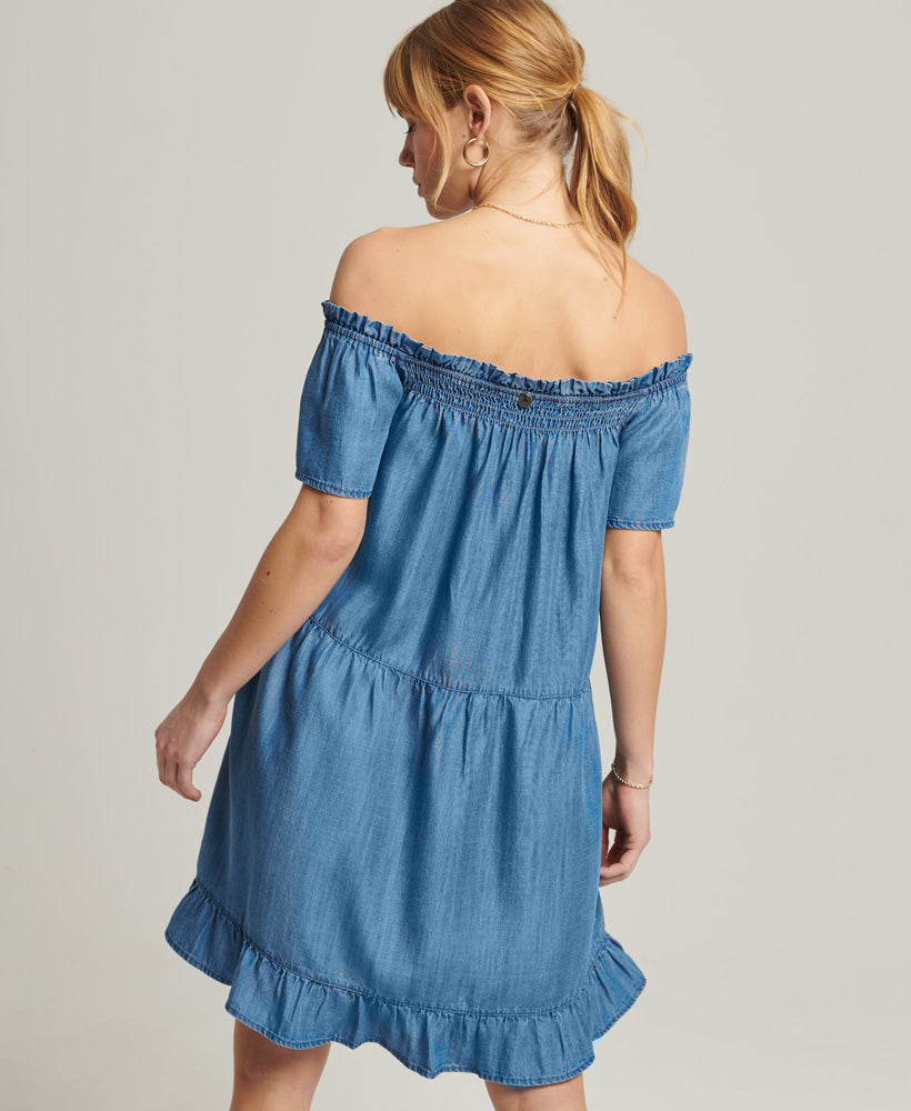 Vintage Off Shoulder Dress | Mid Wash