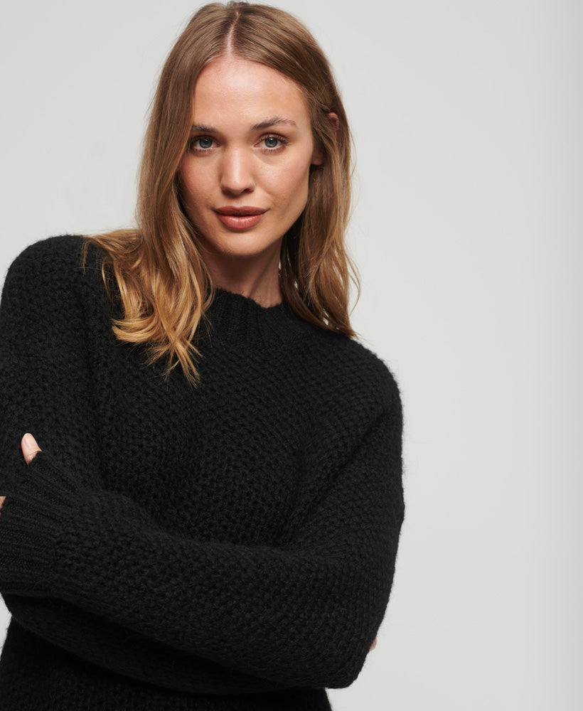 Textured Knit Crew Dress | Black