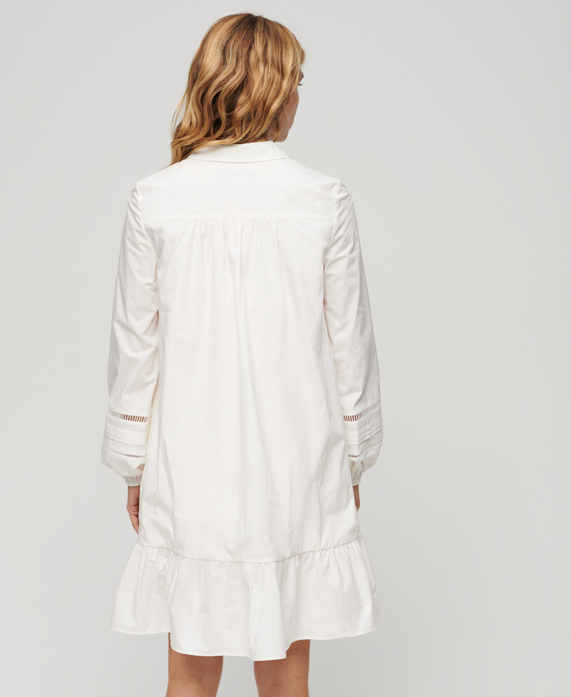 Lace Mix Shirt Dress | Chalk White