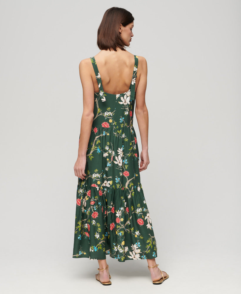 Woven Tiered Maxi Dress | Blossom Birds Green