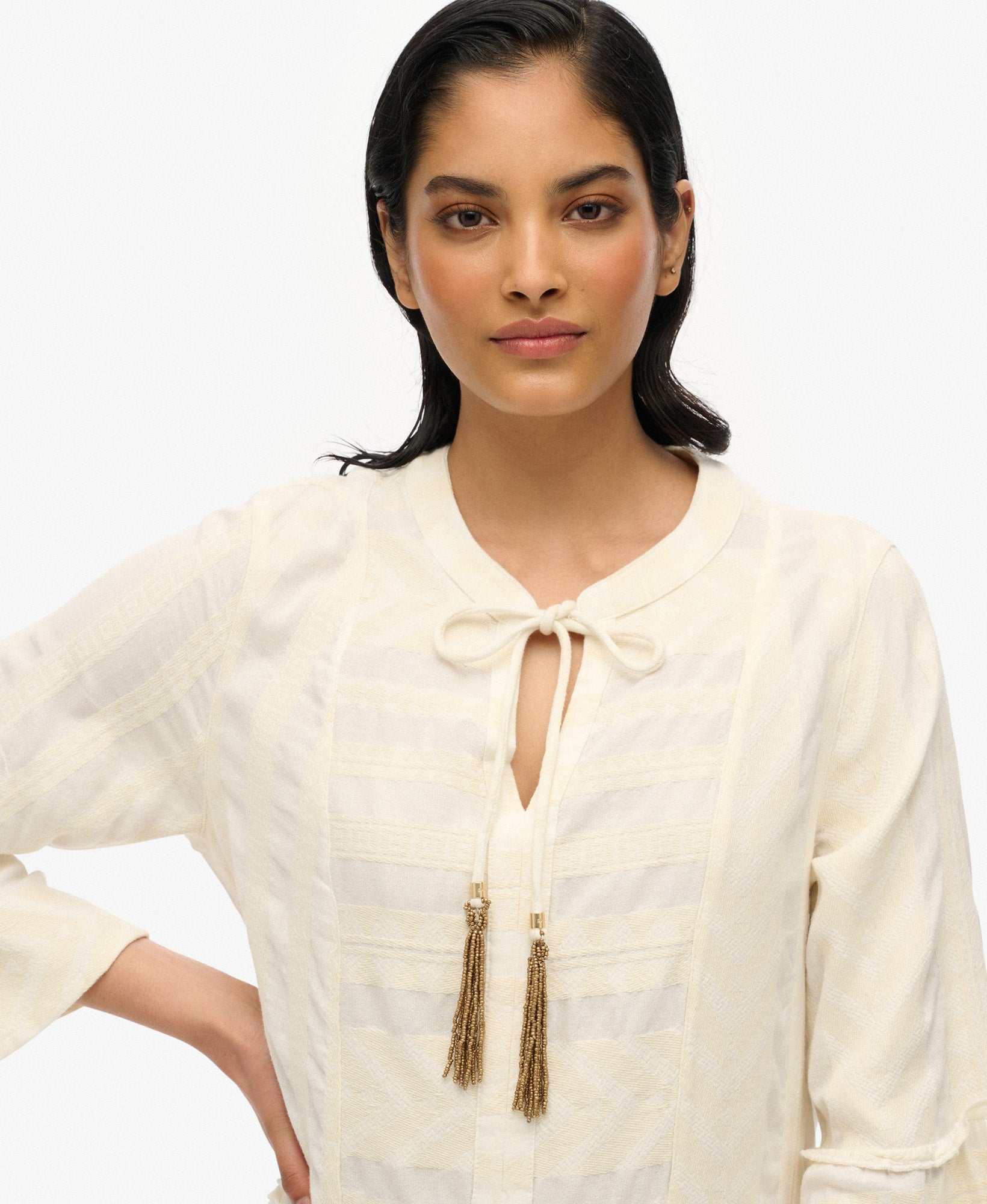 Ibiza Long Sleeve Tiered Mini Dress | Dusty Ecru